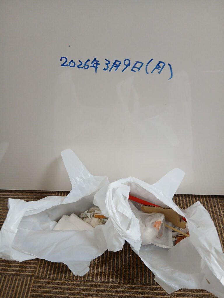 清掃日が月曜日にて土曜日、日曜日のゴミを多く予想してましたが